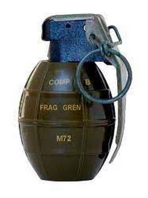 The cylindrical Chilean Cardoen-Metalnor grenade has a hollow-charge cavity at its base, increasing its potential as a demolition device. This feature may be considered for the bottle bomb.