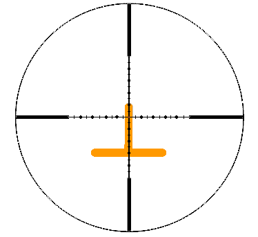 The T itself can be used for quick sighting. When correctly matched to the size of the target and placed over the shoulder/head region a round will impact in the middle of the brow line of a standing target facing the shooter.