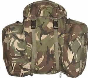 An externally framed Rucksac with a 30-40 litre main compartment and detachable side pockets. This Rucksac will carry:-- Ammo