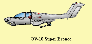The forward part of the Bronco has always reminded me of the Hueycobra. Following this train of thought- might not this component of the AH-1 and its associated equipment be used in a Bronco? The nose turret could mount a FLIR and laser designator. The chin turret something like a .50 Gatling. Further back under the hull mount a turret with a 20mm (or 25mm) cannon as on the Night gunship Broncos. This is a versatile configuration rather like that of the Cheyenne helicopter gunship. (In retrospect I would opt just for the 25mm turret, allowing the Super Bronco to keep its distance from ground-mounted HMGs and utilize orbiting fire.)
