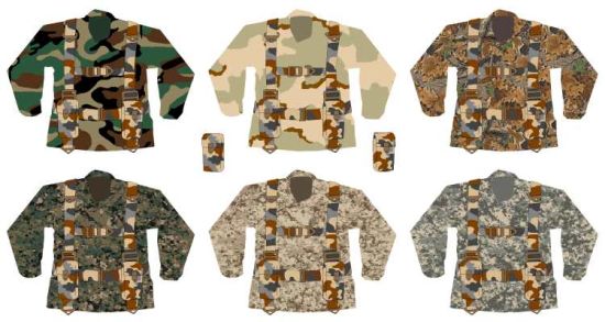 Many thanks to Jade Geko for the illustration of how DWP might possibly look worn with various patterns of camouflage (above). The upper row shows Woodland, Three-Colour Desert and Advantage; the lower shows Woodland MARPAT, Desert MARPAT and ARPAT. Webbing illustrated is a modified STABO pattern as suggested on this webpage.