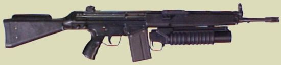 This model can be fitted to weapons other than the M16, allowing them to be mounted on G3s, FALs, AR-10Bs or Stoner SR-25s. The addition of the grenade launcher adds 3 lbs to the rifles weight. To save weight the M203 is mounted on non-heavy-barrelled versions of battle rifles, usually models with shorter, lighter barrels. The G3 is often used in this role and the grenadier carrying the weapon is often also issued with R1M1 grenades. |