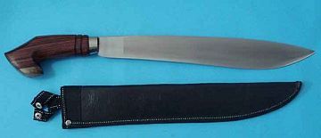 Another kukri inspired knife I own is shown below. The grip is very pretty, but rather heavy, which places the balance further back than ideal.