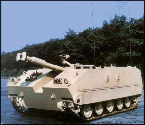 Another possible approach to building a lighter 155mm SPH is to simply accept that crew other than the driver cannot ride on the vehicle. This is the approach taken with the French Mk F3 155mm SPH based on the AMX-13 chassis. The rest of the gun crew rode on support vehicles.